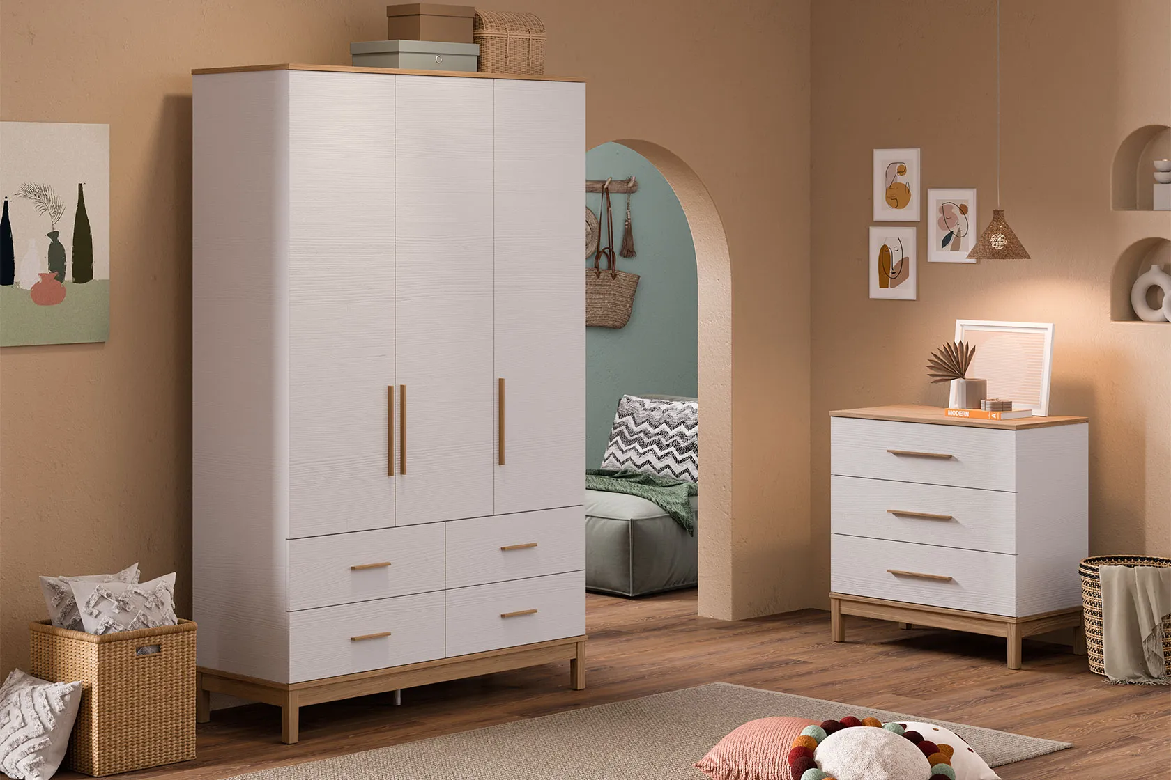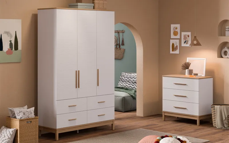 Etto 3 Kapaklı ve Çekmeceli Dolap